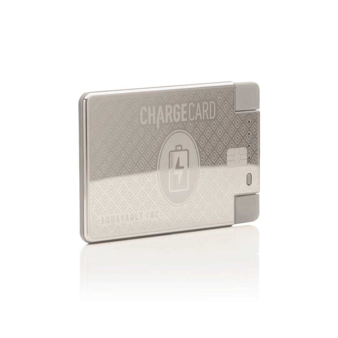 - Has four LED power lights which display how much battery is remaining. When the ChargeCard is dead, just charge it back up by plugging it into the wall or computer