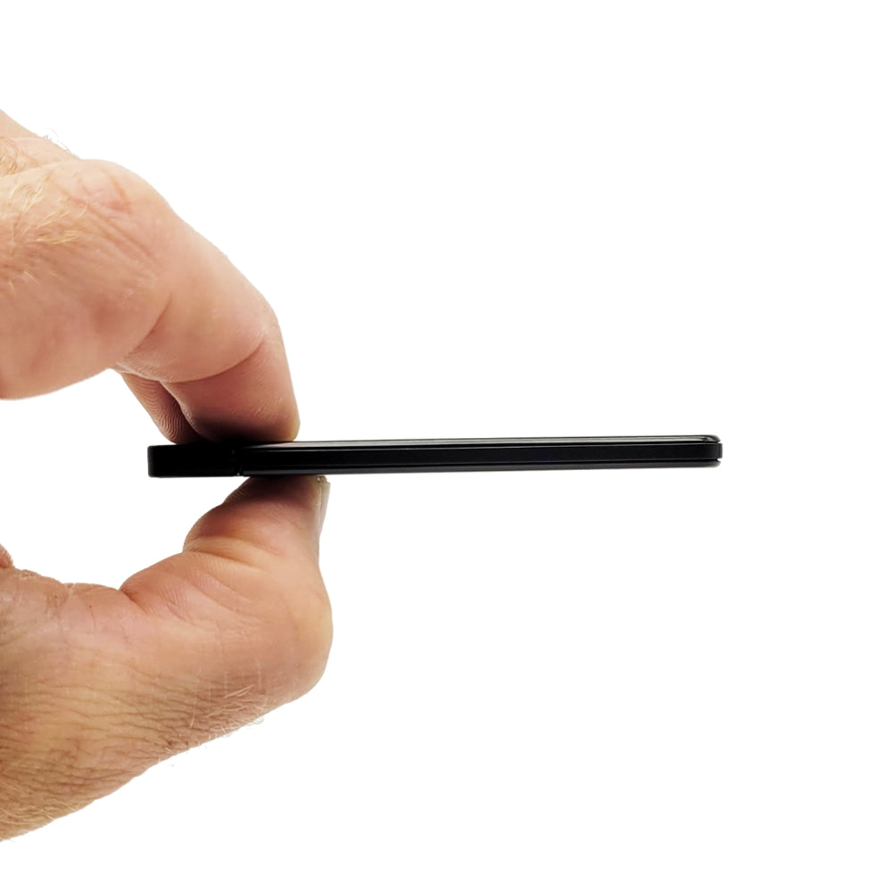 - Dimensions: 3.3 inches x 2.3 inches x 0.18 inches thin (weighs 2.2oz)