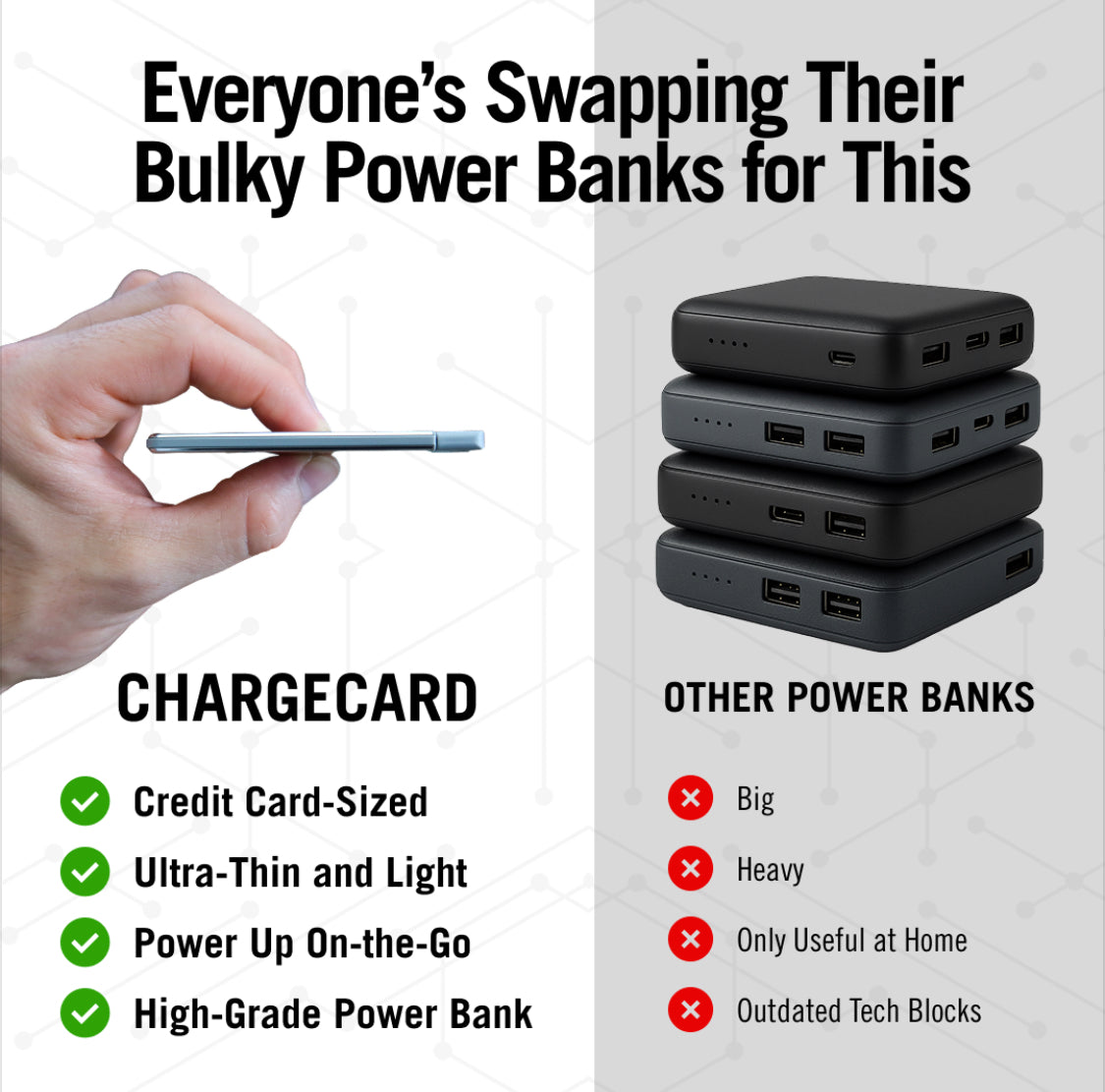 - Gone are the days of having to carry around those bulky portable chargers that are the size of a BRICK